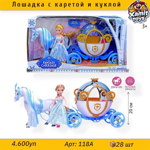 Лошадка с каретой и куклой арт: 118A